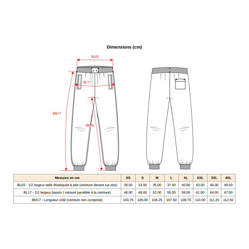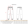 80% coton peigné / 20% polyester. Molleton gratté. 2 poches côtés et 1 poche arrière plaquée. Large bord-côte et lien de serrage à la taille. Finition bord-côte bas de jambe.